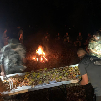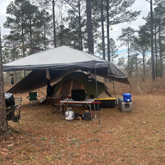 The campground on Mud Creek Road was full of traditional bowhunters ready for a weekend of comradery and pig stalking. The spirits were dampened but not extinguished by a myriad of thunderstorms throughout the weekend. Though the weather wasn't the greatest, 3 members still killed pigs. Mark Willingham, Cain Almond and Joey Spires all managed to put some pork on the ground. Several other members had confessed misses and even one squirrel was harvested with a bow. Numerous members saw alligators and one was almost snake bitten during the abnormally hot February weather.